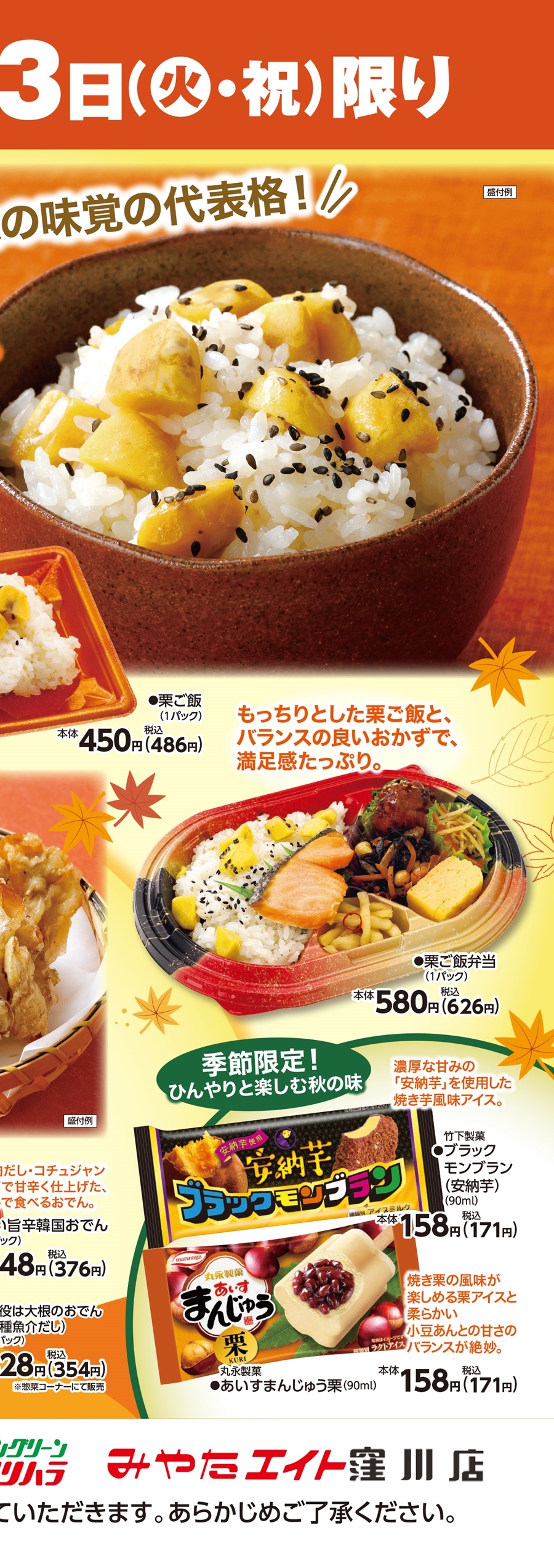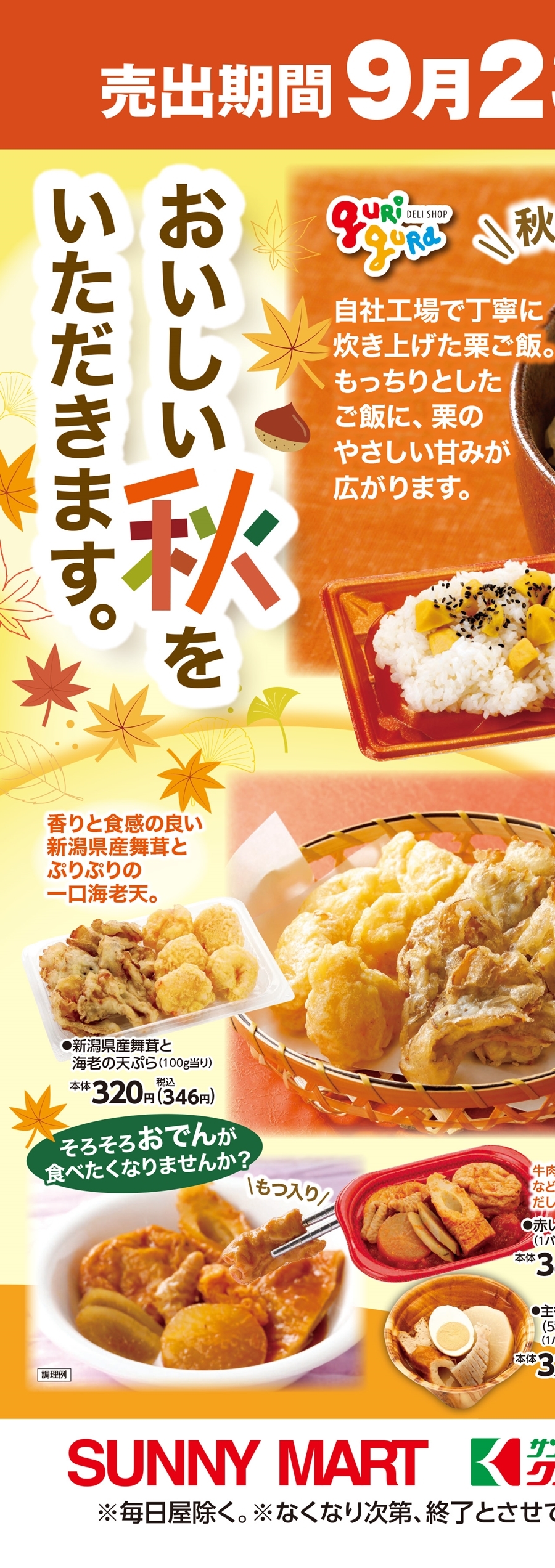 SUNNY MART 売出期間 2025年 9月23日(火・祝)限り!「おいしい秋をいただきます。」LINE