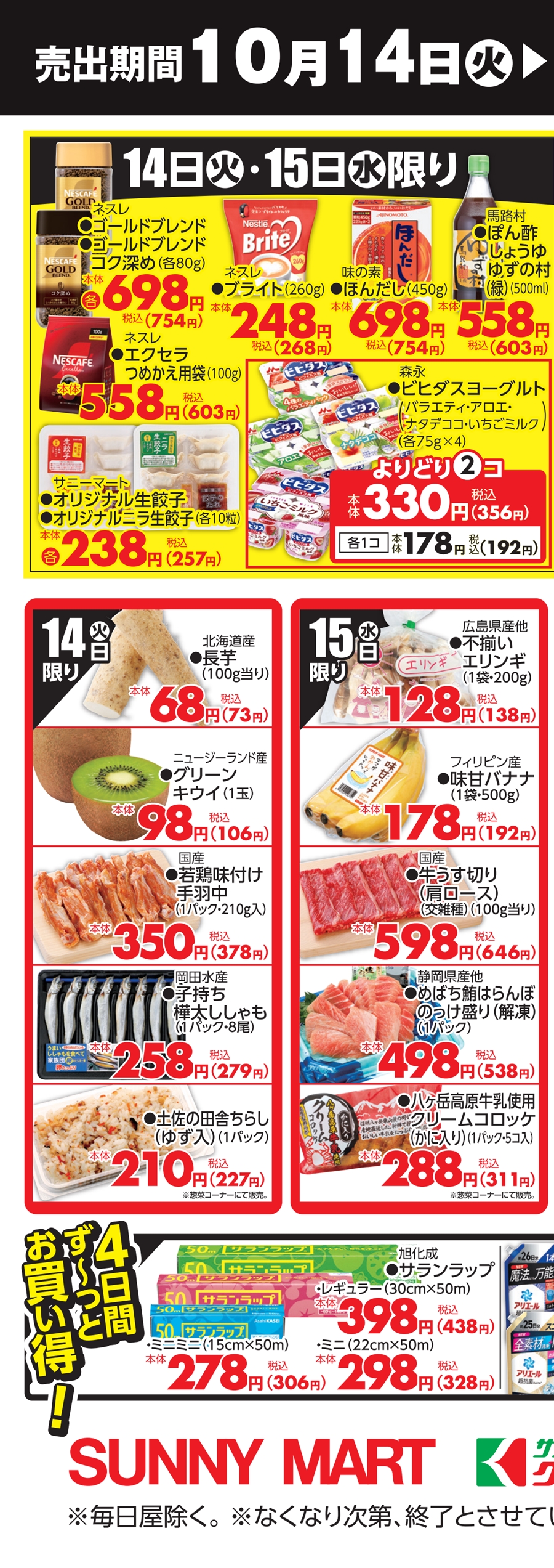 SUNNY MART 2025年 10月14日(火)~10月17日(金) 日替り商品がお買い得♪LINE
