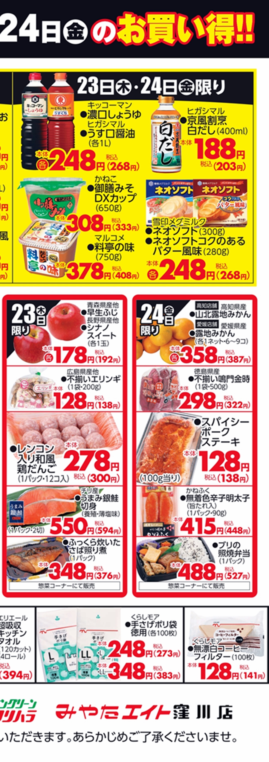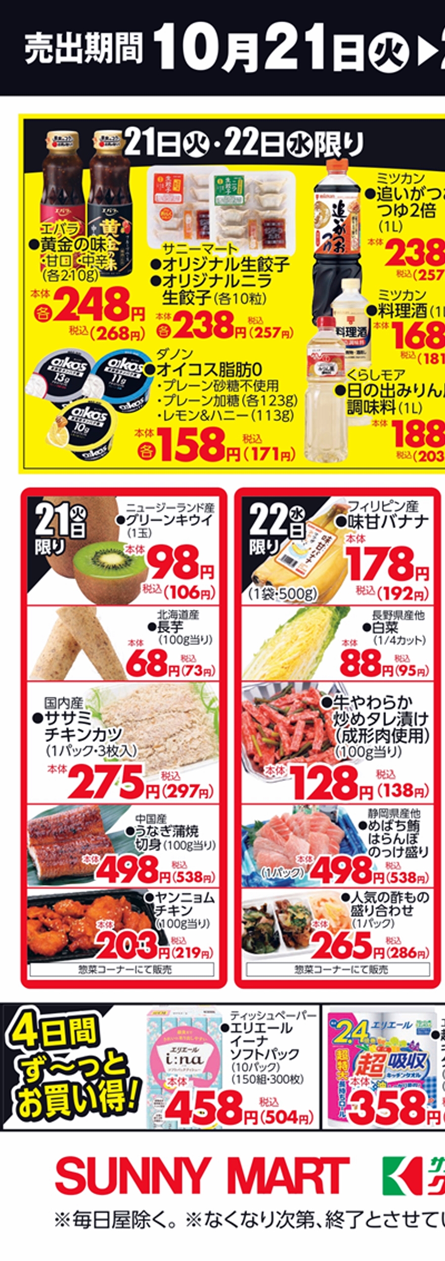 SUNNY MART 2025年 10月21日(火)~10月24日(金) 日替り商品がお買い得♪LINE