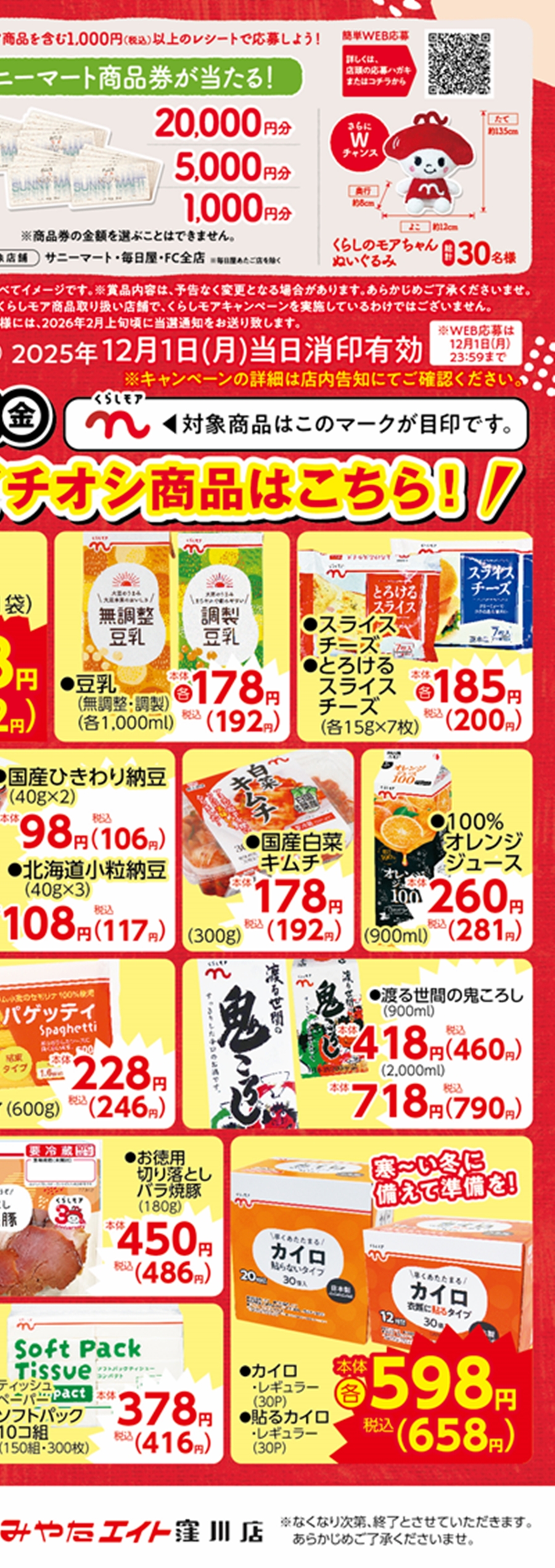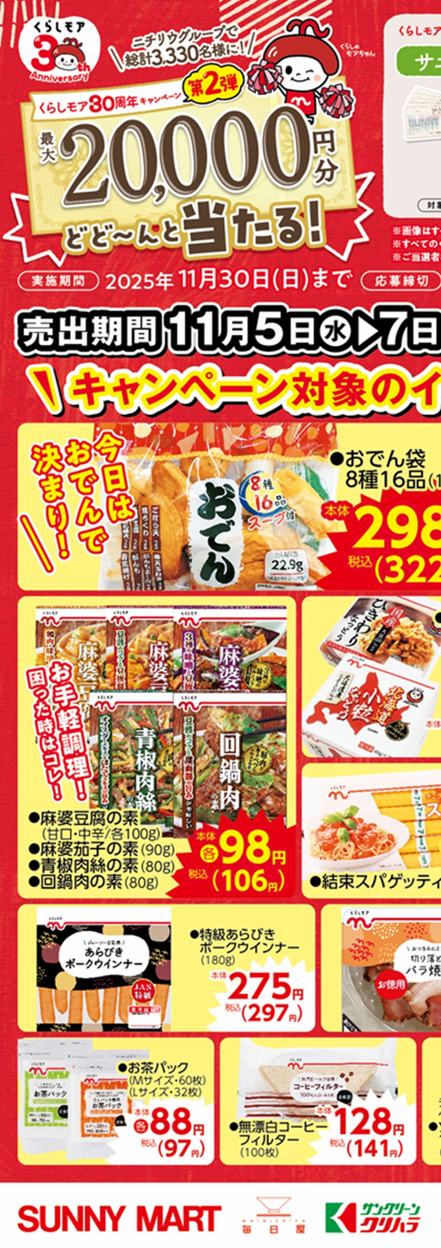 SUNNY MART 売出期間 2025年 11月5日(水)~11月7日(金)「くらしモアキャンペーン♪」LINE