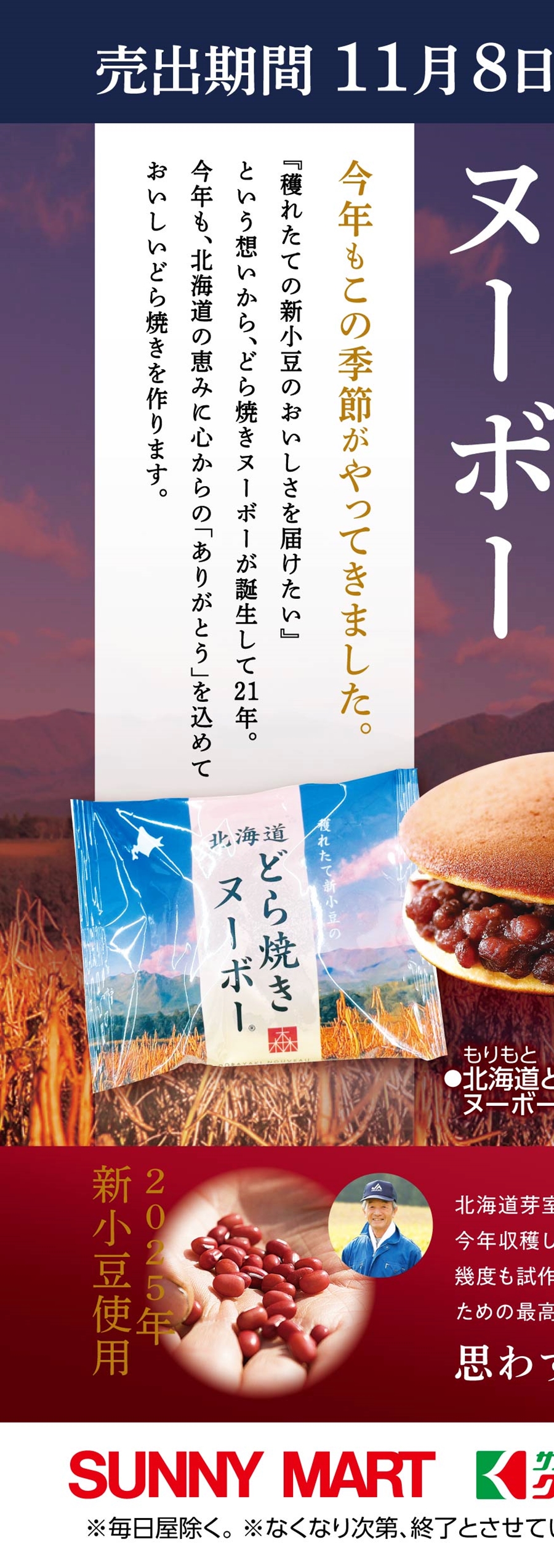 SUNNY MART 売出期間 2025年 11月8日(土)・9日(日)限り!「北海道どら焼きヌーボー」LINE