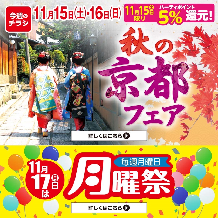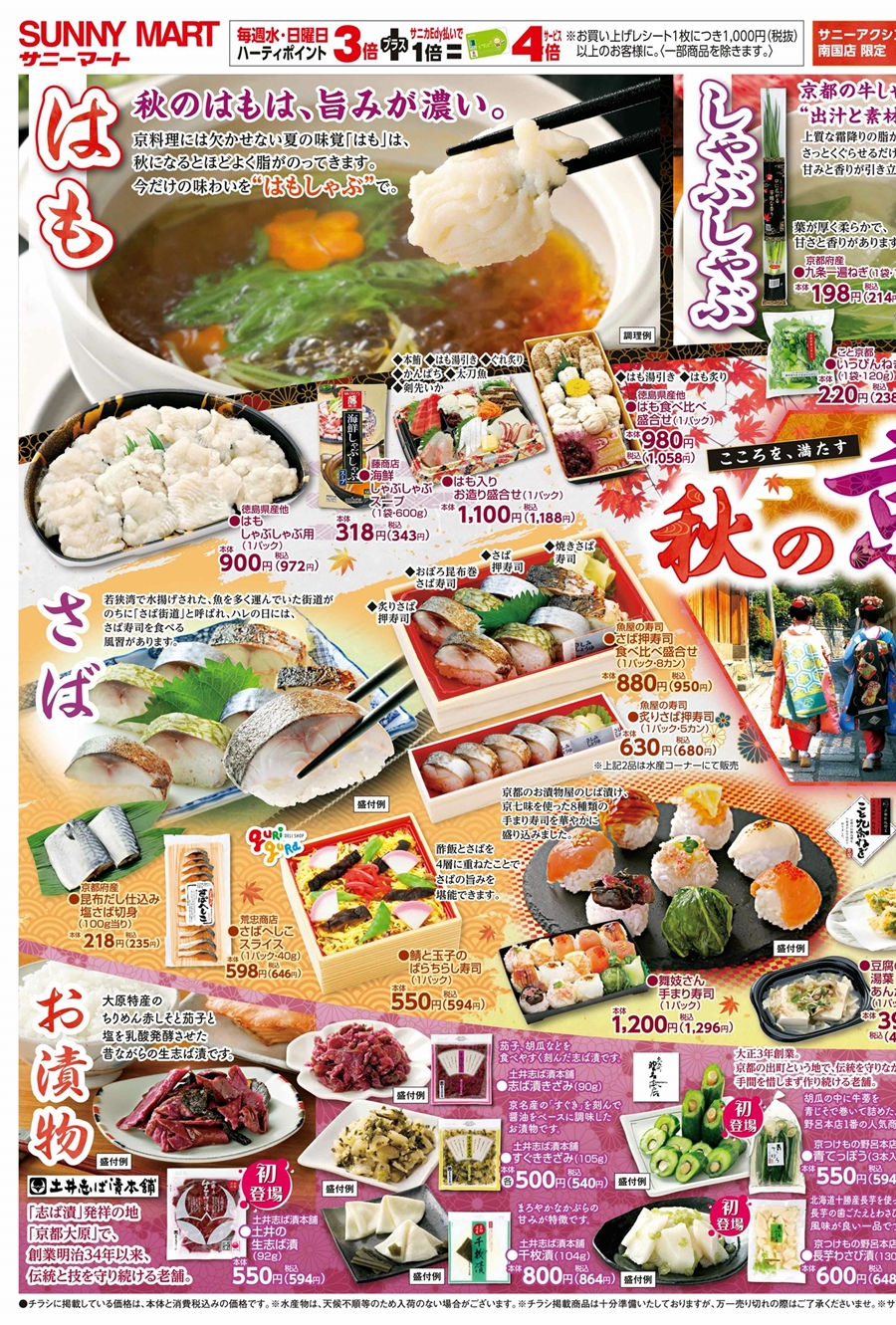 SUNNY MART 2025年 11月15日(土)〜11月16日(日)チラシ「こころを、満たす♪秋の京都フェア」LINE