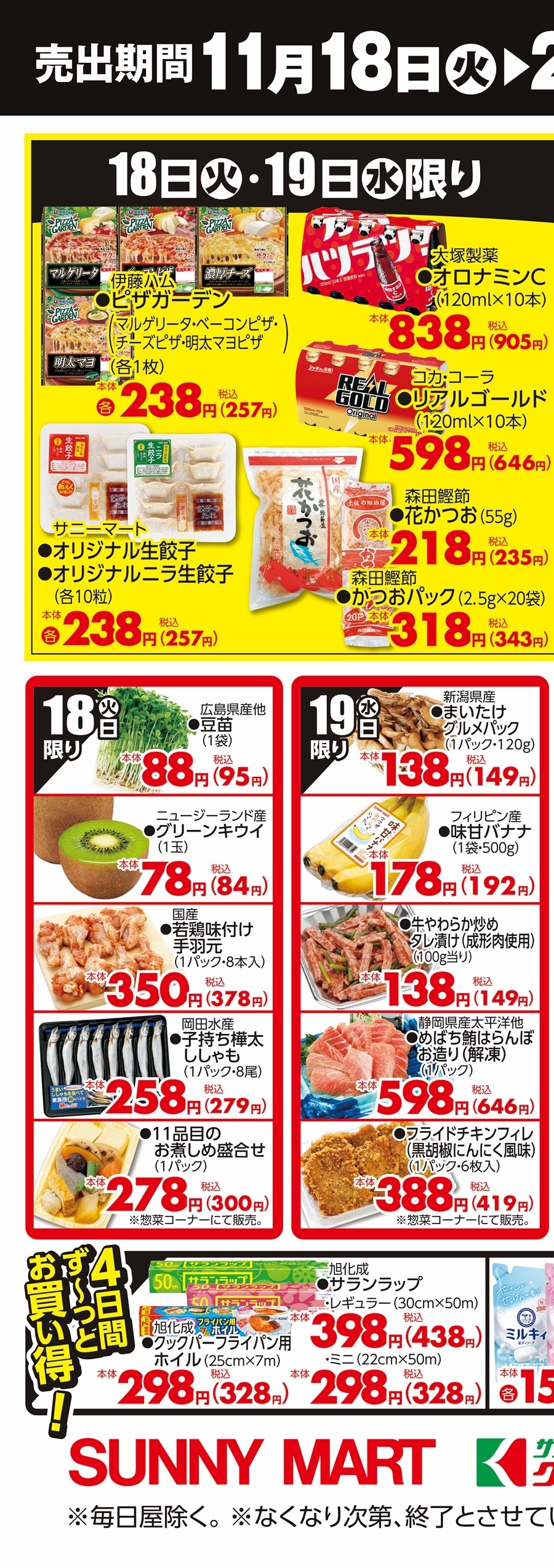 SUNNY MART 2025年 11月18日(火)~11月21日(金) 日替り商品がお買い得♪LINE