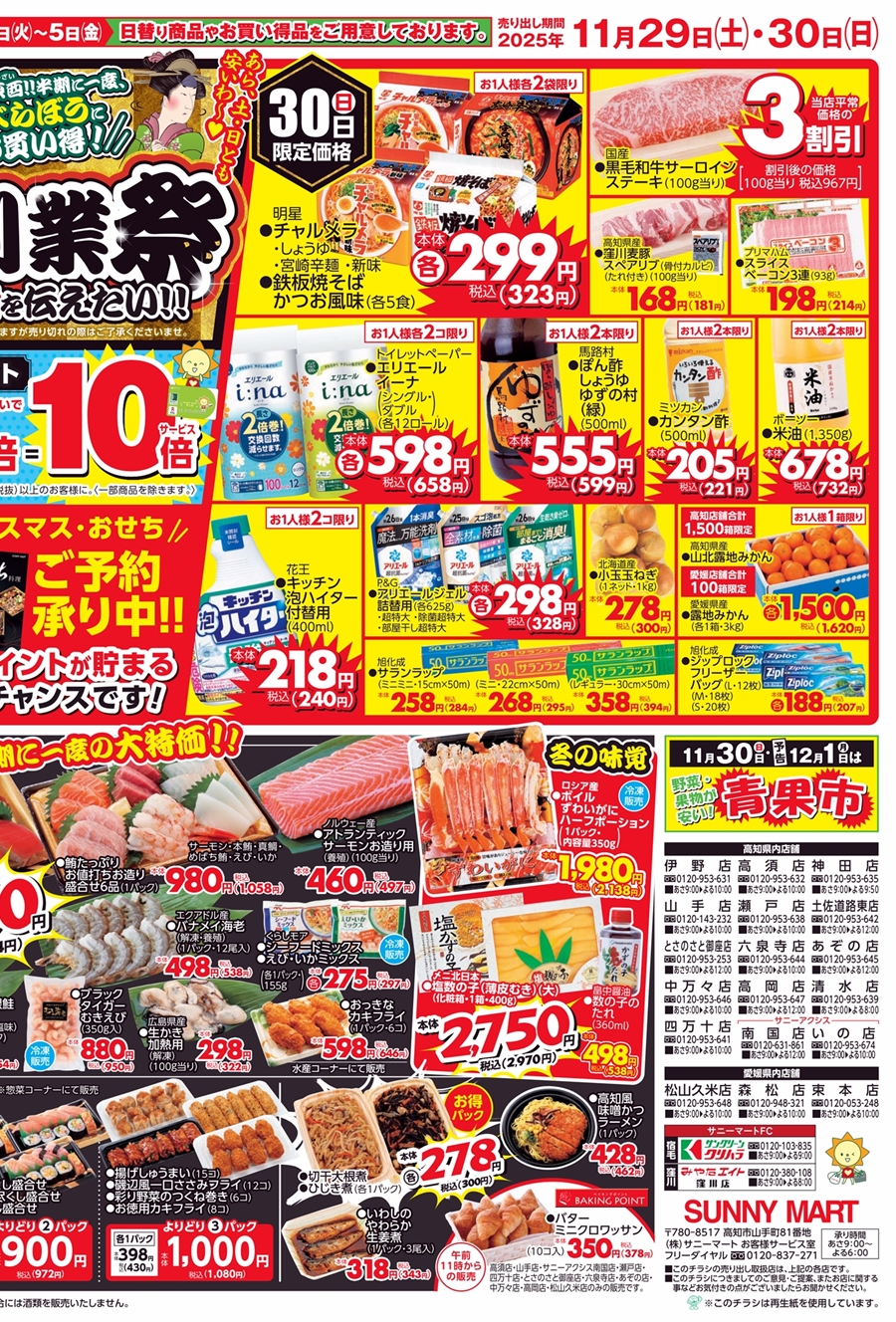 SUNNY MART 2025年 11月29日(土)~11月30日(日)「価格で感謝を伝えたい!売切御免!大創業祭♪」LINE