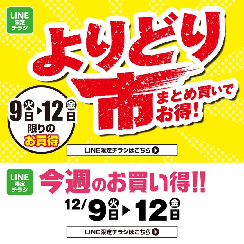 SUNNY MART 2025年 12月9日(火)~12月12日(金) まとめ買いでお得!「よりどり市」LINE
