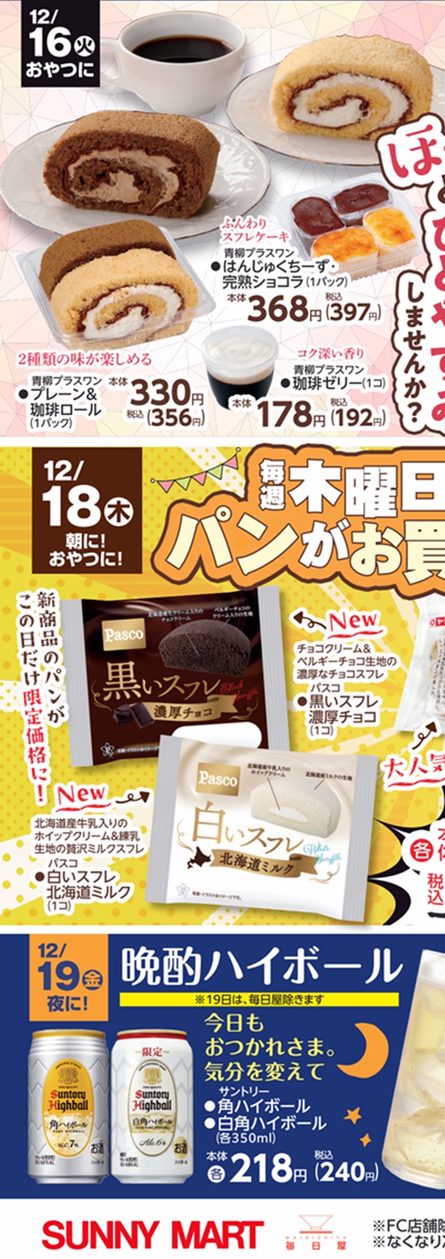 SUNNY MART 2025年 12月16日(火)~12月19日(金) 「忙しい合間にほっとひとやすみしませんか?」LINE