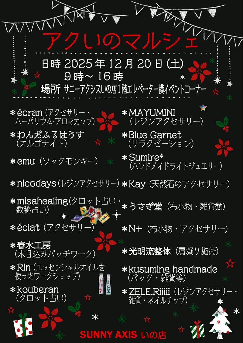 【限定販売&イベント】12/20「アクいのマルシェ」サニーアクシスいの店