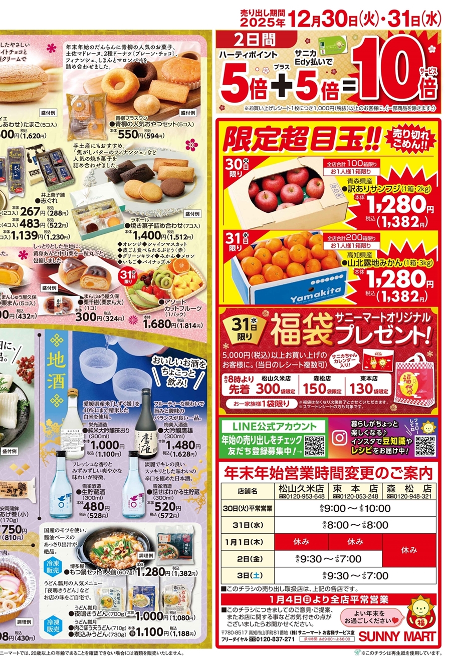 SUNNY MART (愛媛エリア) 2025年 12月30日(土)〜12月31日(月)チラシ「とびきりのごちそうで一年の締めくくり♪」LINE