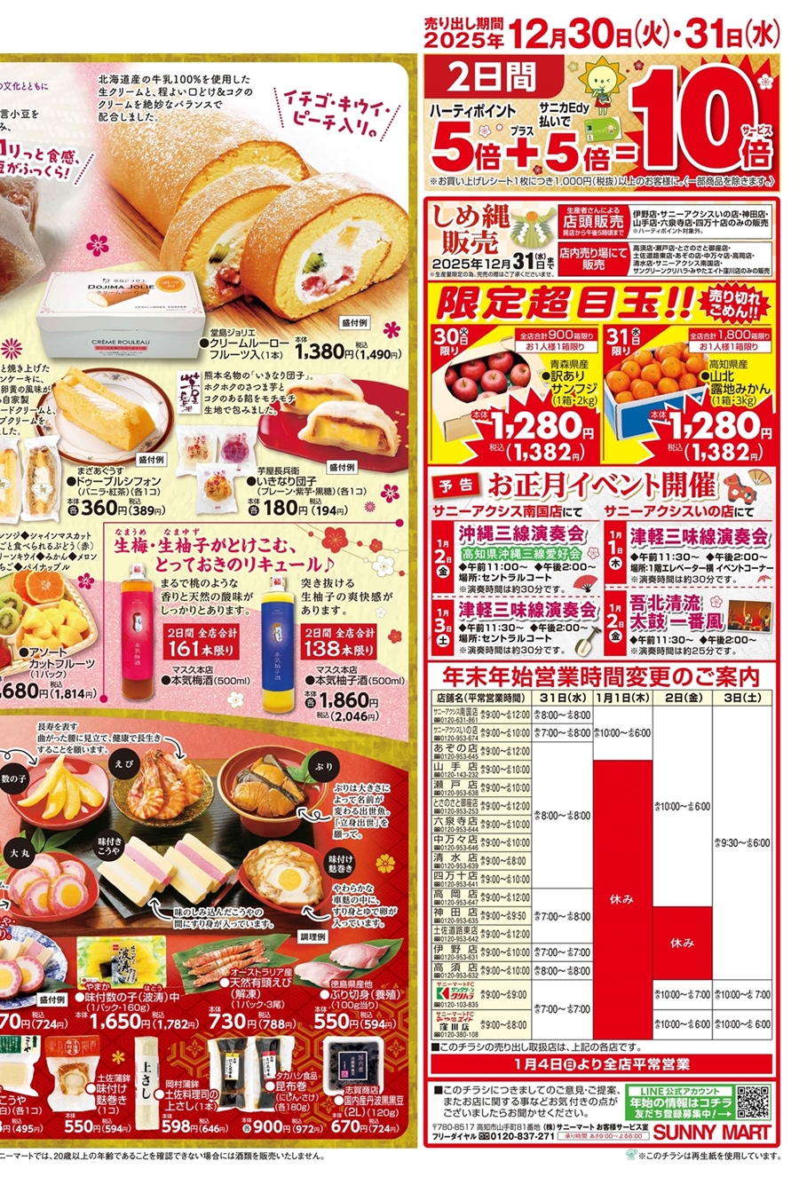 SUNNY MART (高知エリア) 2025年 12月30日(土)〜12月31日(月)チラシ「とびきりのごちそうで一年の締めくくり♪」LINE