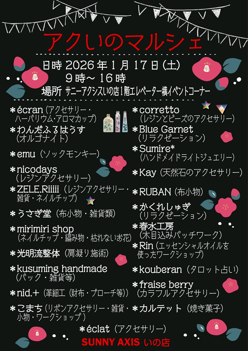 【限定販売&イベント】1/17「アクいのマルシェ」サニーアクシスいの店