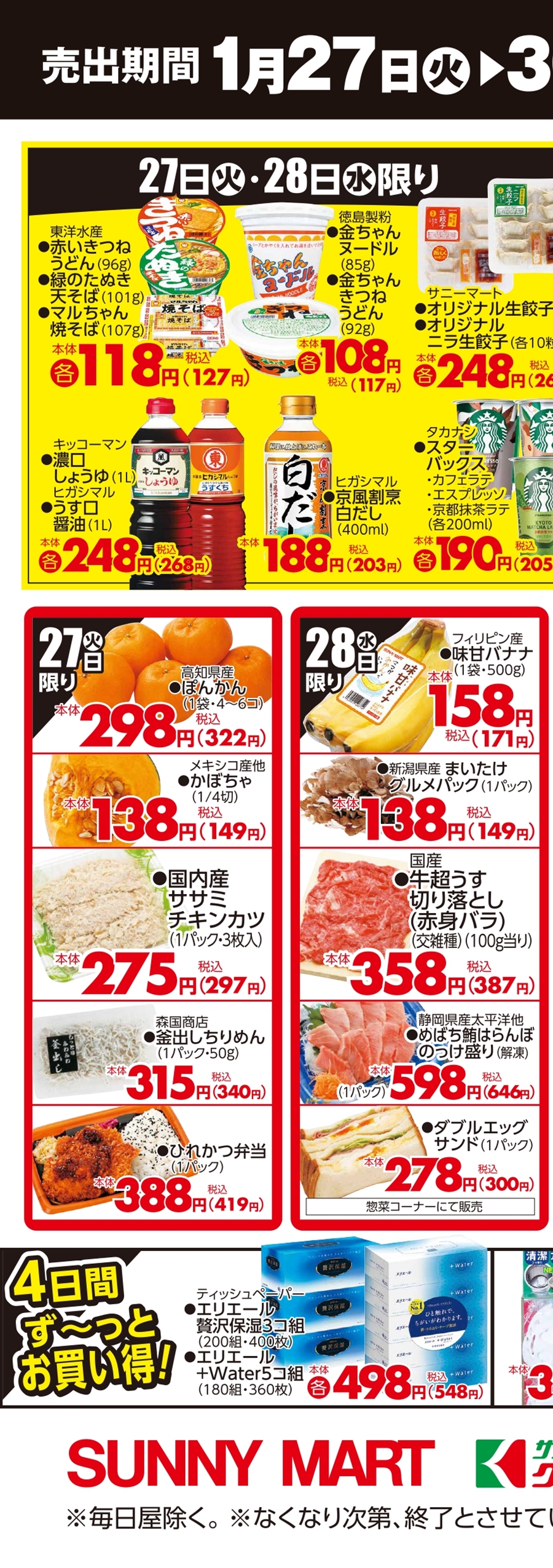 SUNNY MART 2026年 1月27日(火)~1月30日(金) 日替り商品がお買い得♪LINE