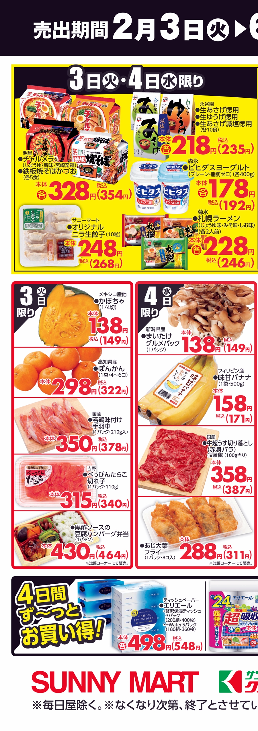 SUNNY MART 2026年 2月3日(火)~2月6日(金) 日替り商品がお買い得♪LINE