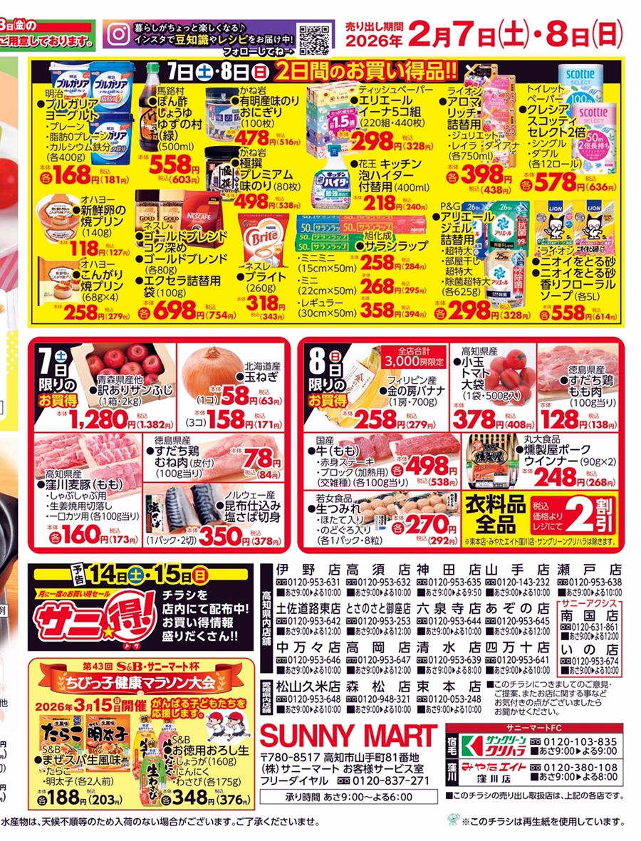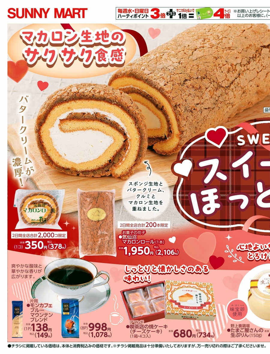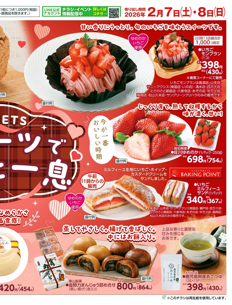 SUNNY MART 2026年 2月7日(土)〜2月8日(日)チラシ「スイーツでほっと一息♪」LINE