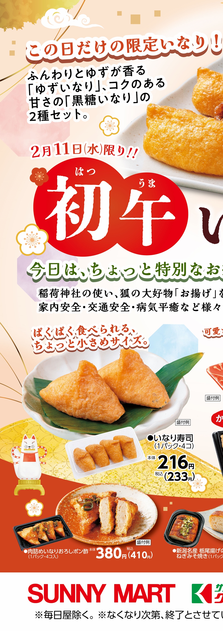 SUNNY MART 2026年 2月11日(水) 限り!この日だけの限定いなり!「初午いなりの日」LINE