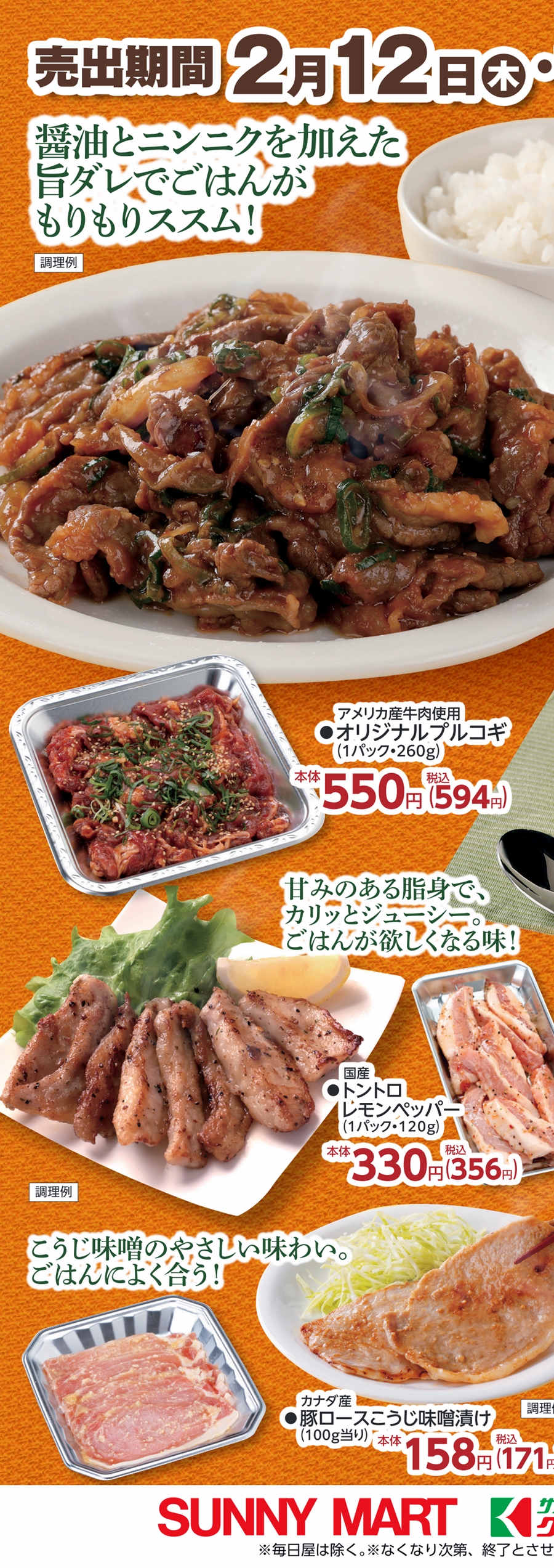 SUNNY MART 売出期間 2026年 2月12日(木) ・2月13日(金)「ごはんがススム肉おかず♪」LINE