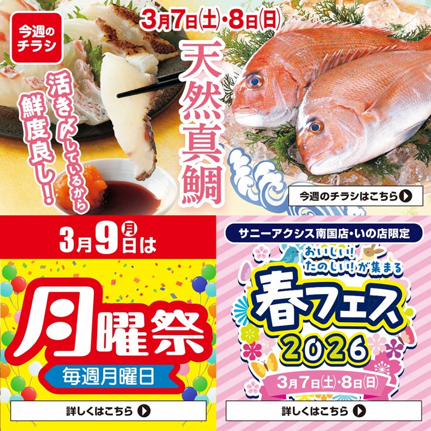 SUNNY MART 2026年 3月9日(月) 月曜だけのお買い得♪「月曜祭」売り切れごめんの超目玉商品お見逃しなく!LINE