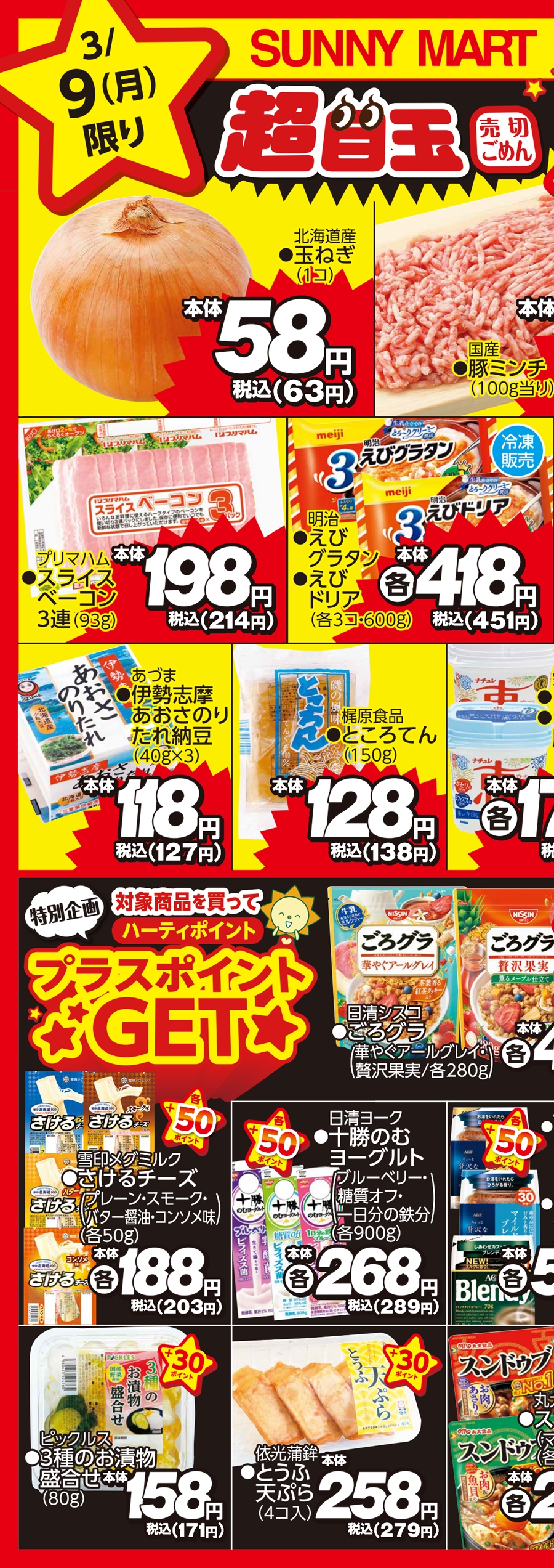 2. SUNNY MART 2026年 3月9日(月) 月曜だけのお買い得♪「月曜祭」売り切れごめんの超目玉商品お見逃しなく!LINE