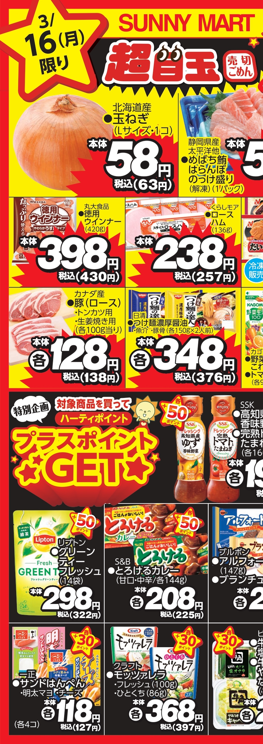 SUNNY MART 2026年 3月16日(月) 月曜だけのお買い得♪「月曜祭」売り切れごめんの超目玉商品お見逃しなく!LINE