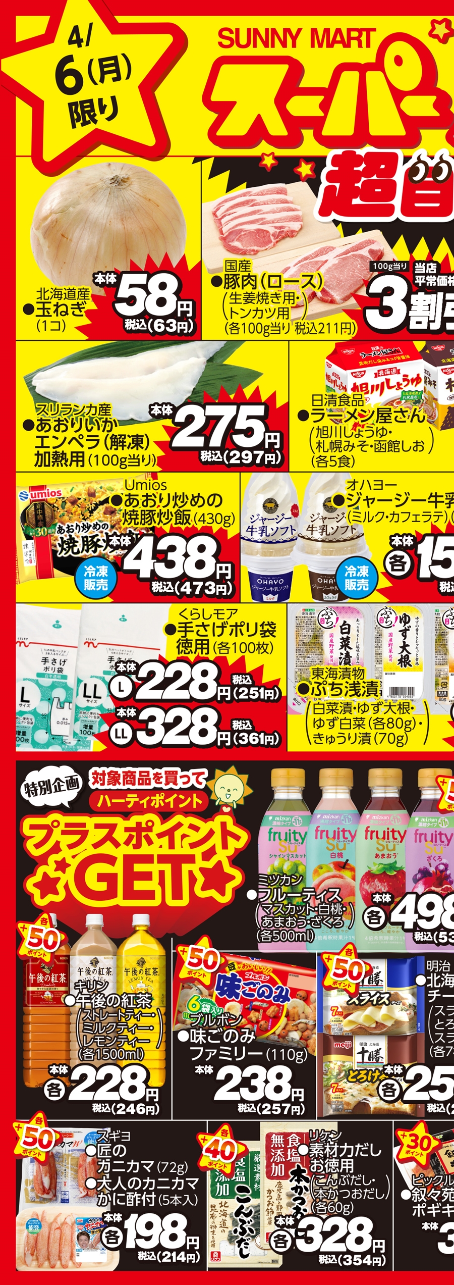 SUNNY MART 2026年 4月6日(月) 月曜だけのお買い得♪「月曜祭」売り切れごめんの超目玉商品お見逃しなく!LINE