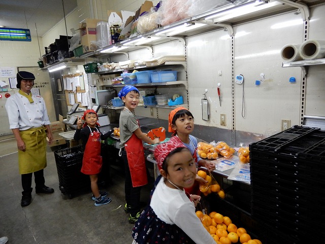 青果ではみかんの商品作り。みんなのがんばりで、たくさんのみかんが売場に並びました。