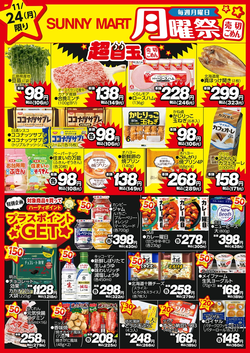 SUNNY MART 2025年 11月24日(月) 月曜だけのお買い得♪「月曜祭」