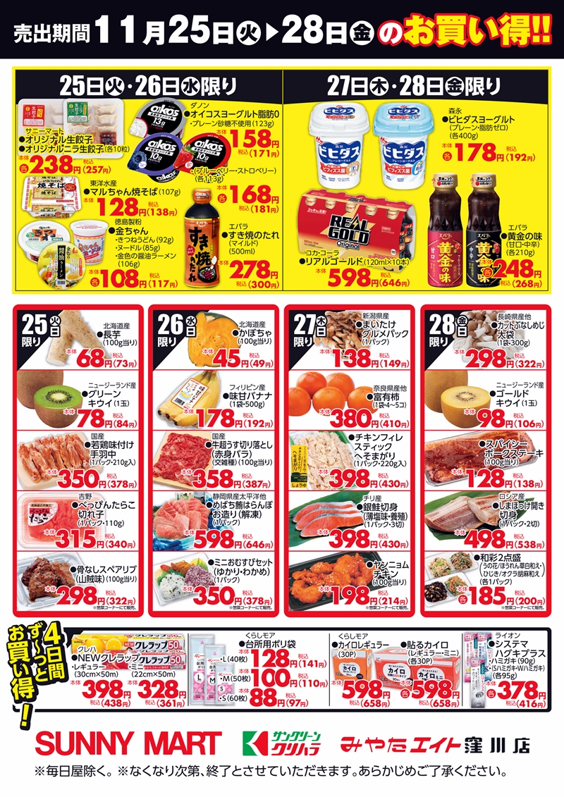 SUNNY MART 2025年 11月25日(火)~11月28日(金) 日替り商品がお買い得♪