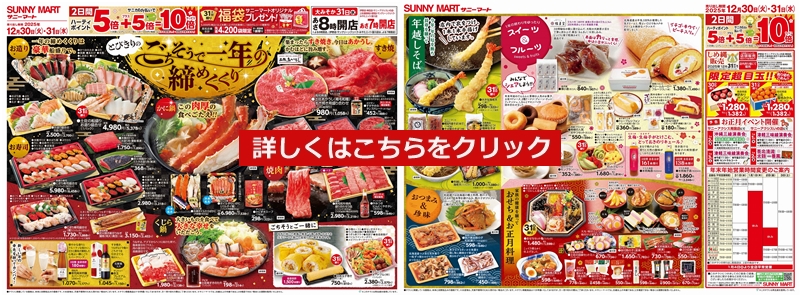 SUNNY MART (高知エリア) 2025年 12月30日(火)〜12月31日(水)チラシ「とびきりのごちそうで一年の締めくくり♪」