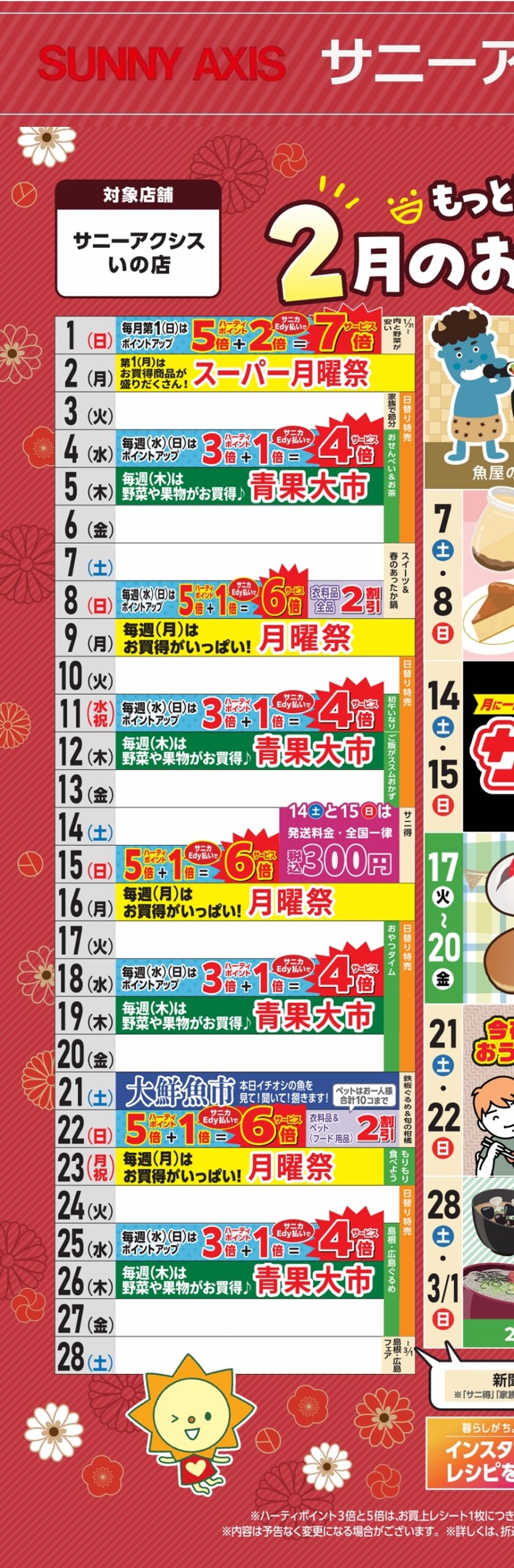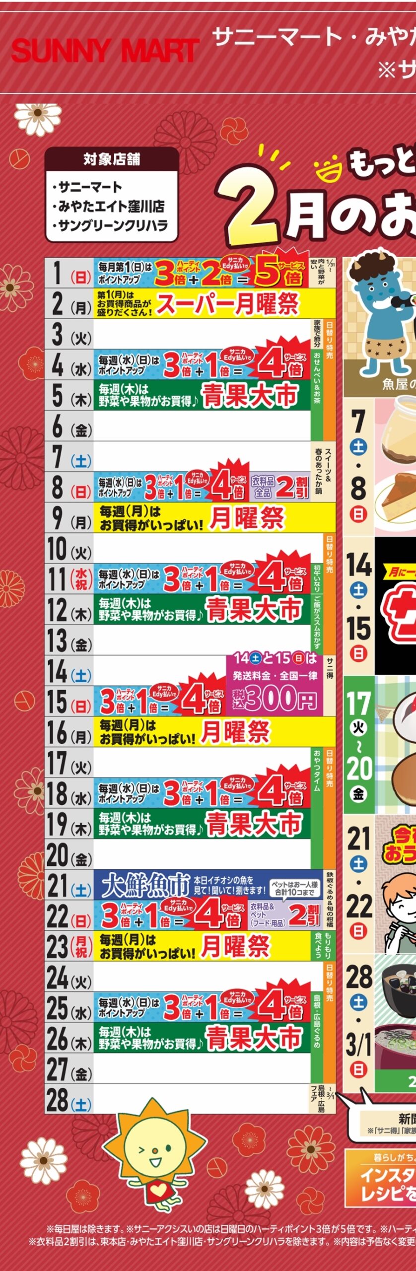 SUNNY MART 2026年「もっと楽しく!もっとお得に!2月のお買い物カレンダー」