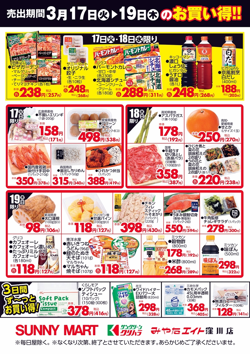 SUNNY MART 2026年 3月17日(火)~3月19日(木) 日替り商品がお買い得♪