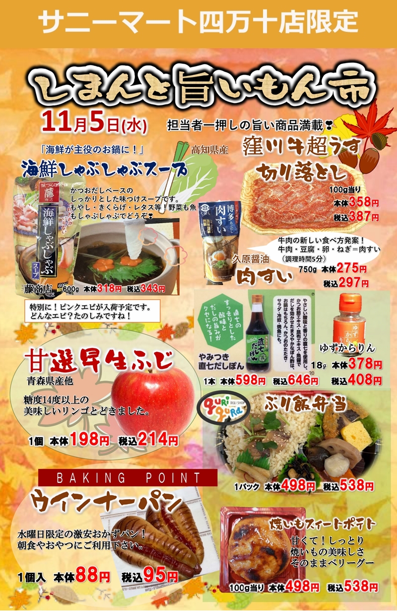SUNNY MART 四万十店・清水店・愛媛店舗イベント情報