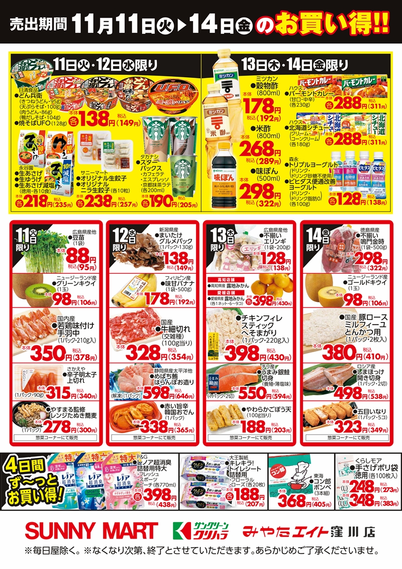 SUNNY MART チラシ 日替り商品がお買い得♪